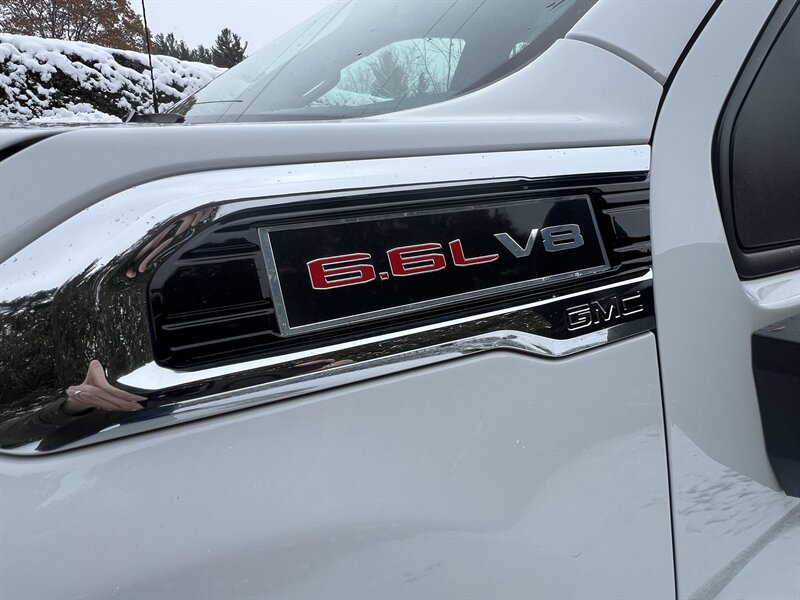 Introducing the 2022 GMC Sierra 2500 Pro, a robust and reliable truck designed for both work and play. Powered by a formidable 6.6L V8 engine, it delivers an impressive 401 horsepower and 464 ft-lbs of torque, ensuring optimal performance for any task. The exterior showcases a sleek Summit White finish, while the interior features a sophisticated Jet Black design, providing a striking contrast.